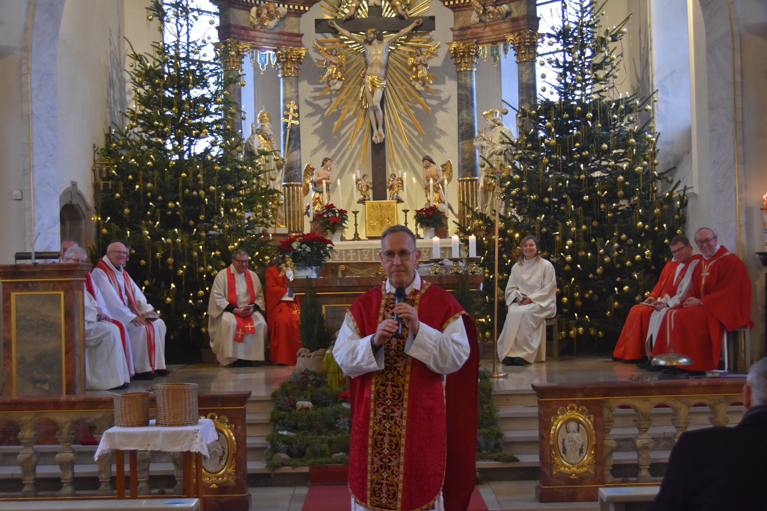 Zum Festgottesdienst konnte Ortspfarrer Michael Hergl den Wallfahrtsdirektor von Maria Rosenberg, Pfarrer Volker Sehy, als Festprediger begrüßen, der mit zehn Mitzelebranten die feierliche Messe gestaltete. Für den festlichen musikalischen Rahmen sorgte der Kirchenchor St. Leo unter der Leitung von Rudolf Scholl. Den traditionellen Opfergang führte Ortsbürgermeister Thomas Angel an. Am Nachmittag gab es dann noch eine Sebastianus-Andacht. und eine besonders gestaltetet Abendmesse schloss den Tag ab.